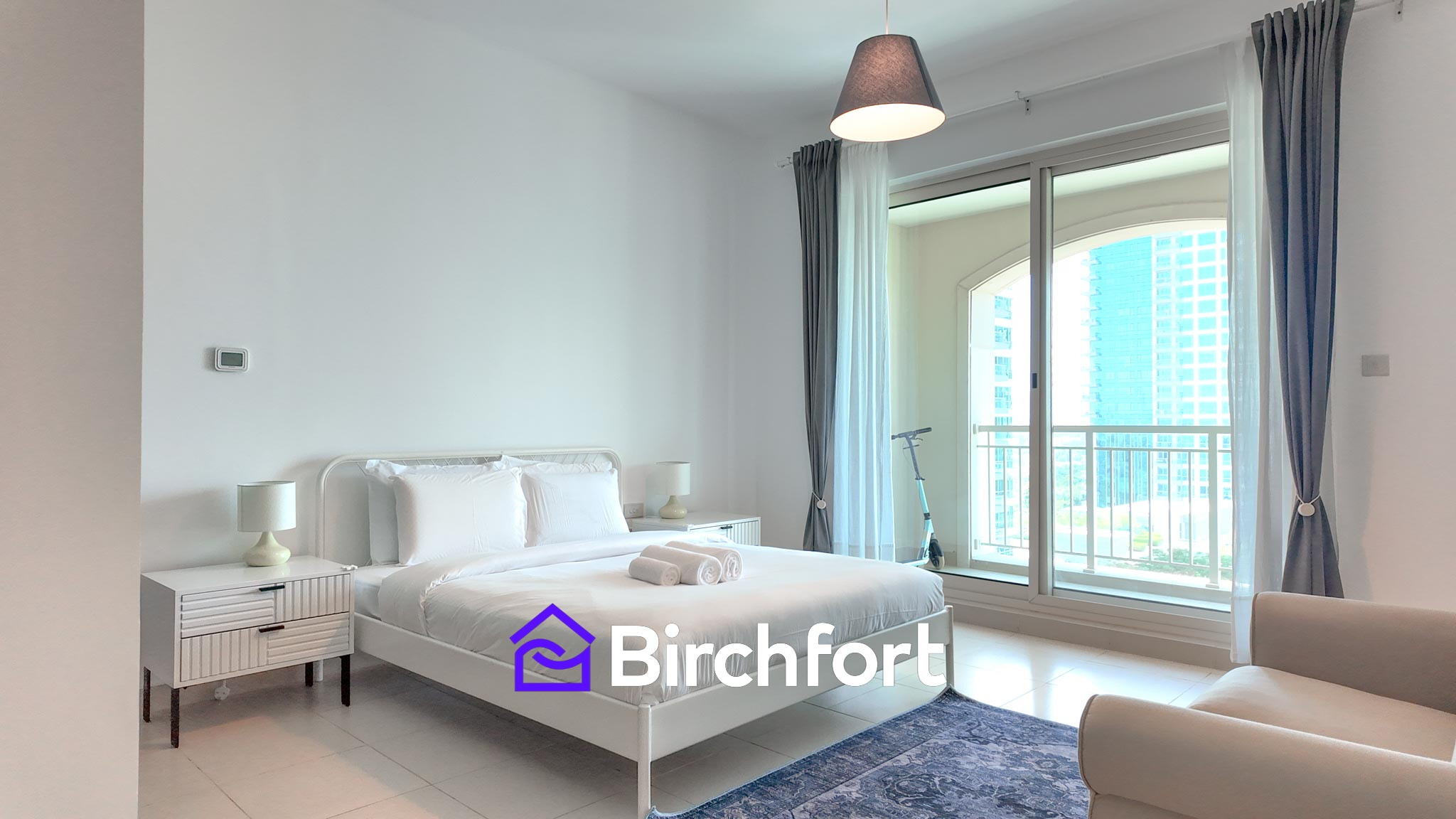 The apartment in Dubai has 2 bedrooms and has capacity for 5 people. The apartment is 1,385 ft². The accommodation is equipped with the following items: elevator, washing machine, dryer, iron, safe, hair dryer, balcony, gym / fitness centre, alarm, central heating, air-conditioned, communal swimming pool, covered parking in the adjoining building, 1 TV, satellite tv (Languages: English). In the electric independent kitchen, refrigerator, oven, freezer, dishwasher, dishes/cutlery, kitchen utensils, coffee machine, frying pan, toaster and kettle are provided.