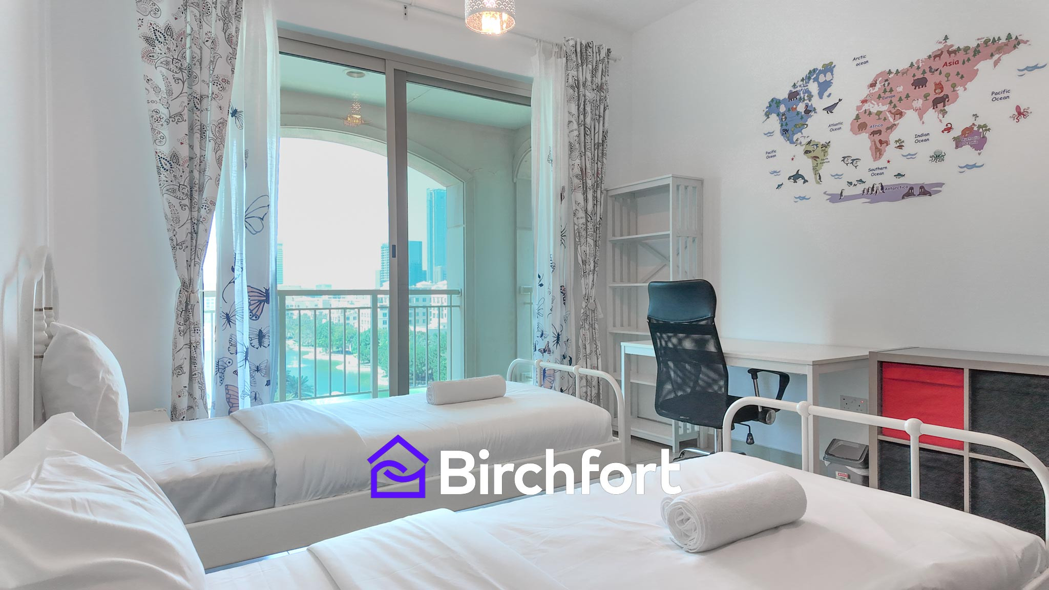 The apartment in Dubai has 2 bedrooms and has capacity for 5 people. The apartment is 1,385 ft². The accommodation is equipped with the following items: elevator, washing machine, dryer, iron, safe, hair dryer, balcony, gym / fitness centre, alarm, central heating, air-conditioned, communal swimming pool, covered parking in the adjoining building, 1 TV, satellite tv (Languages: English).In the electric independent kitchen, refrigerator, oven, freezer, dishwasher, dishes/cutlery, kitchen utensils, coffee machine, frying pan, toaster and kettle are provided.